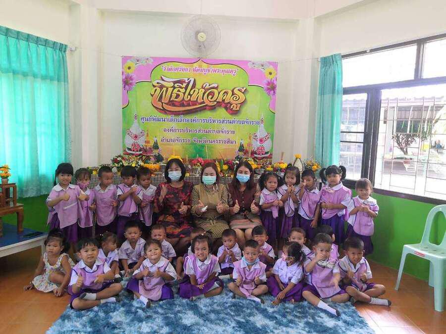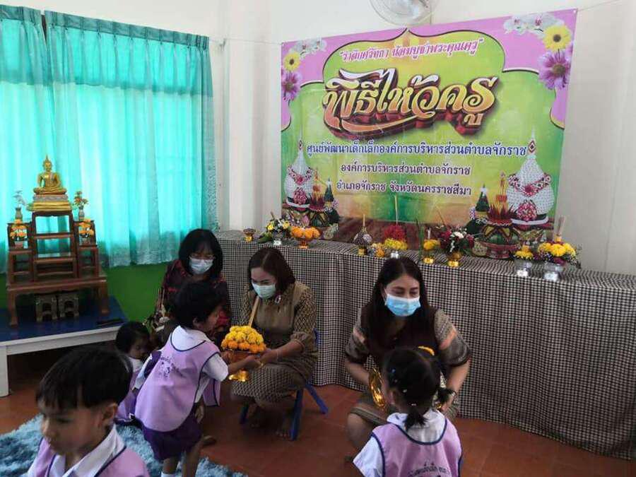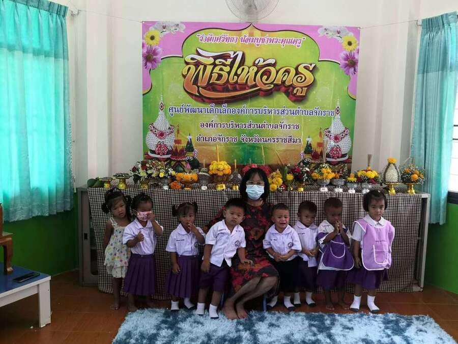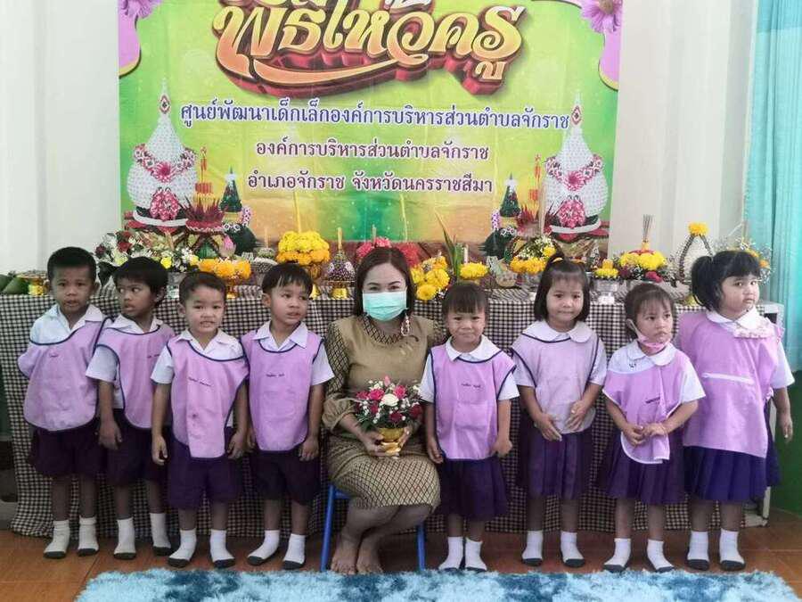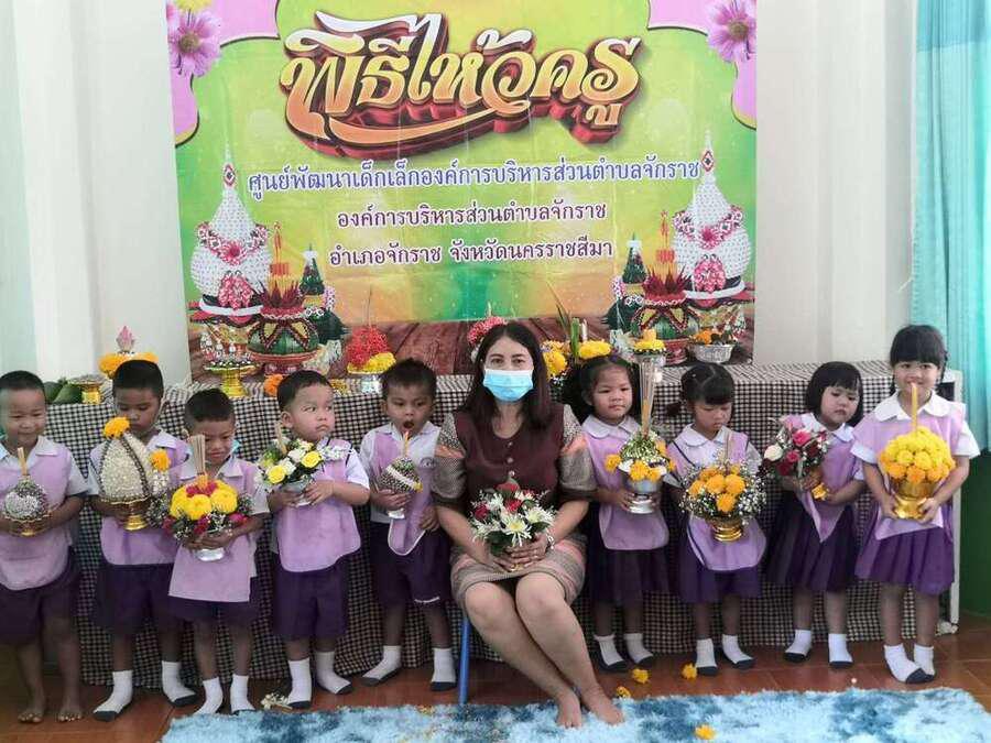 ศูนย์พัฒนาเด็กเล็กองค์การบริหารส่วนตำบลจักราช จัดพิธีไหว้ครู ประจำปีการศึกษา 2564 เพื่อให้เด็กได้รำลึกถึงบุญคุณครู และแสดงความกตัญญูต่อผู้มีพระคุณ S:0