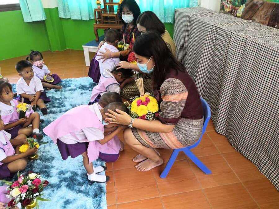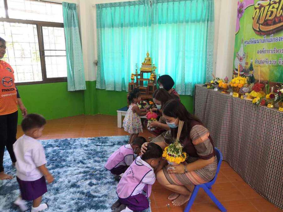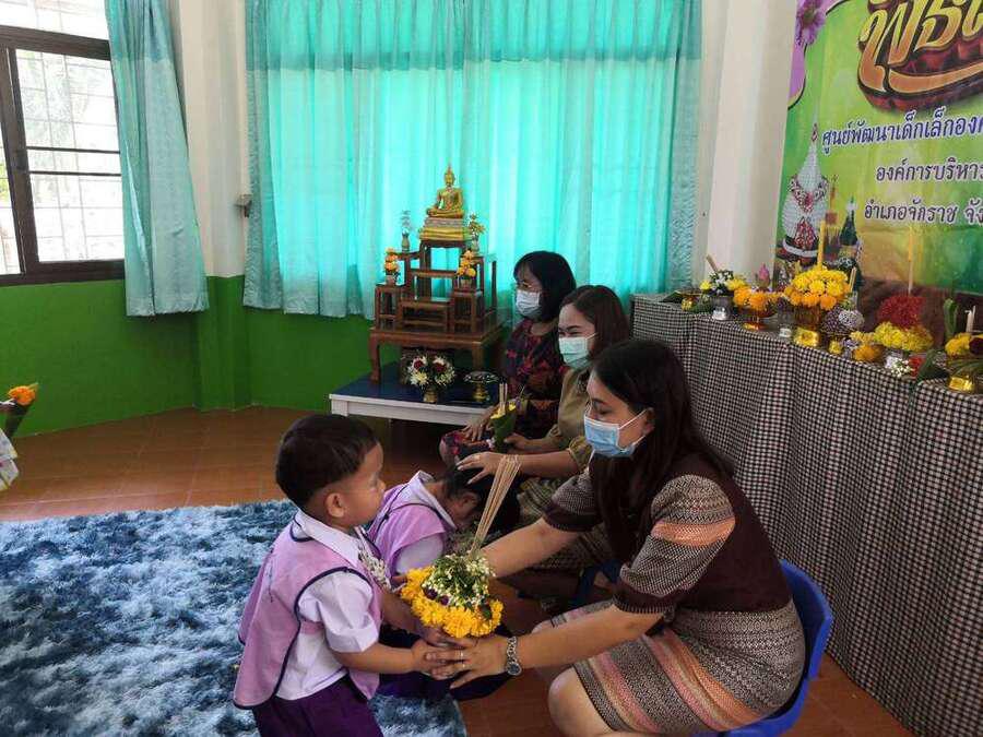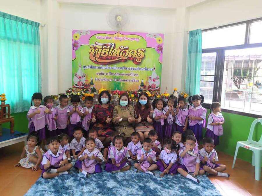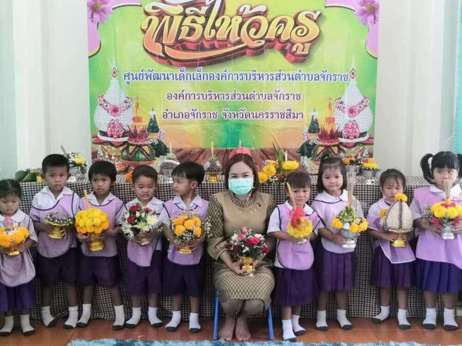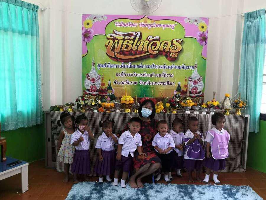 ศูนย์พัฒนาเด็กเล็กองค์การบริหารส่วนตำบลจักราช จัดพิธีไหว้ครู ประจำปีการศึกษา 2564 เพื่อให้เด็กได้รำลึกถึงบุญคุณครู และแสดงความกตัญญูต่อผู้มีพระคุณ S:0