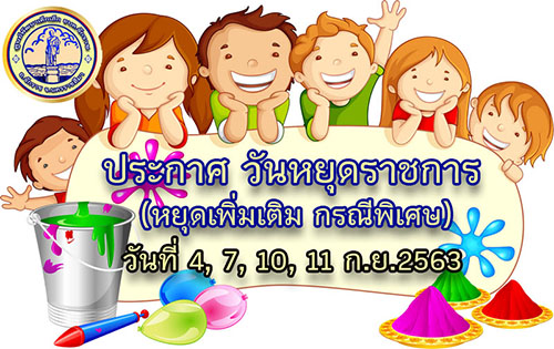 หยุดวันศุกร์ ที่ 4 ก.ย.2563          เนื่องจาก   หยุดตามมติคณะรัฐมนตรีเพื่อชดเชยวันสงกรานต์
