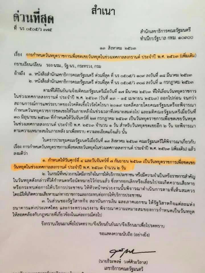 ขอแจ้งวันหยุดราชการ เพิ่มเติม(กรณีพิเศษ) รายละเอียดดังนี้