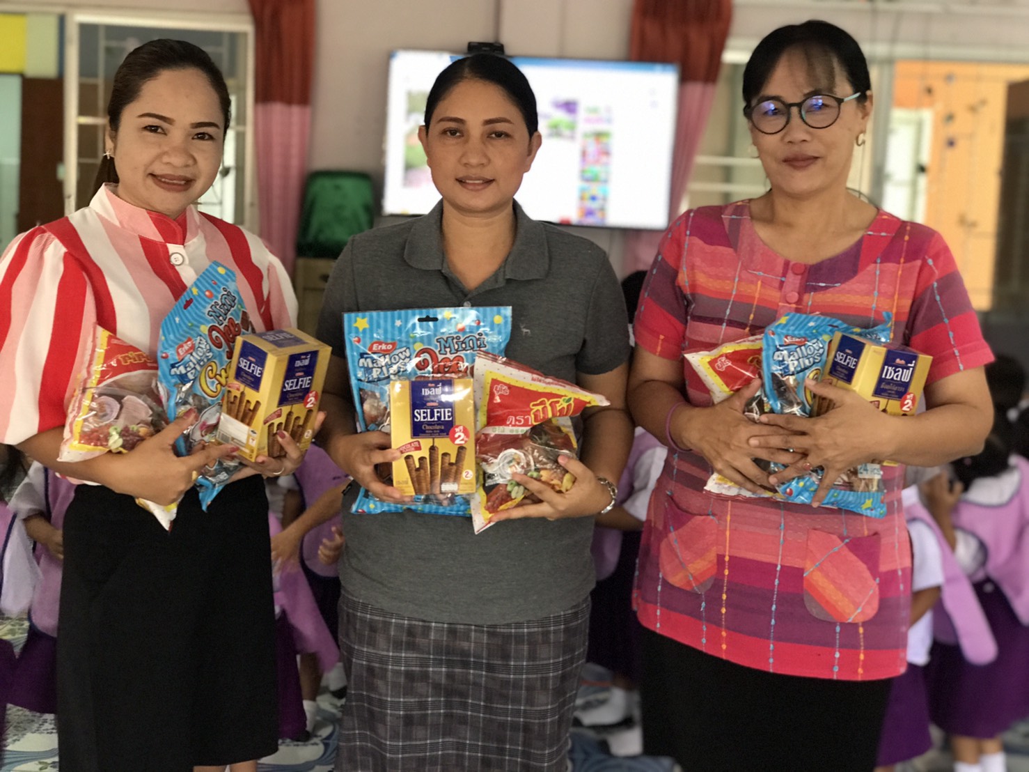 เช้านี้ผู้ใหญ่ใจดี นางสาวปาณิศา เศษกลาง มอบขนมให้เด็กๆ เนื่องในวันครบรอบวันเกิด
